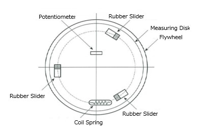 ●The rubber sliders thus will be pressed to the surface by the weight of the device and the torque generated by the friction between the rubber sliders and the test surface as spinning disc is slowed down is measured.
